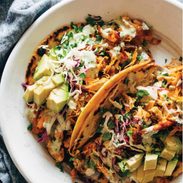 - Assemble tacos: buffalo chicken, mashed avocado, shredded cabbage, lime squeeze, cheese of choice, and ranch all in a nice fluffy tortilla.